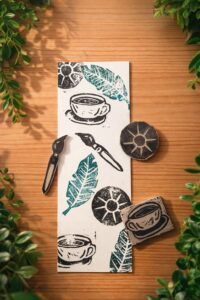 Un atelier pour apprendre à créer ton propre tampon en linogravure, étape par étape.