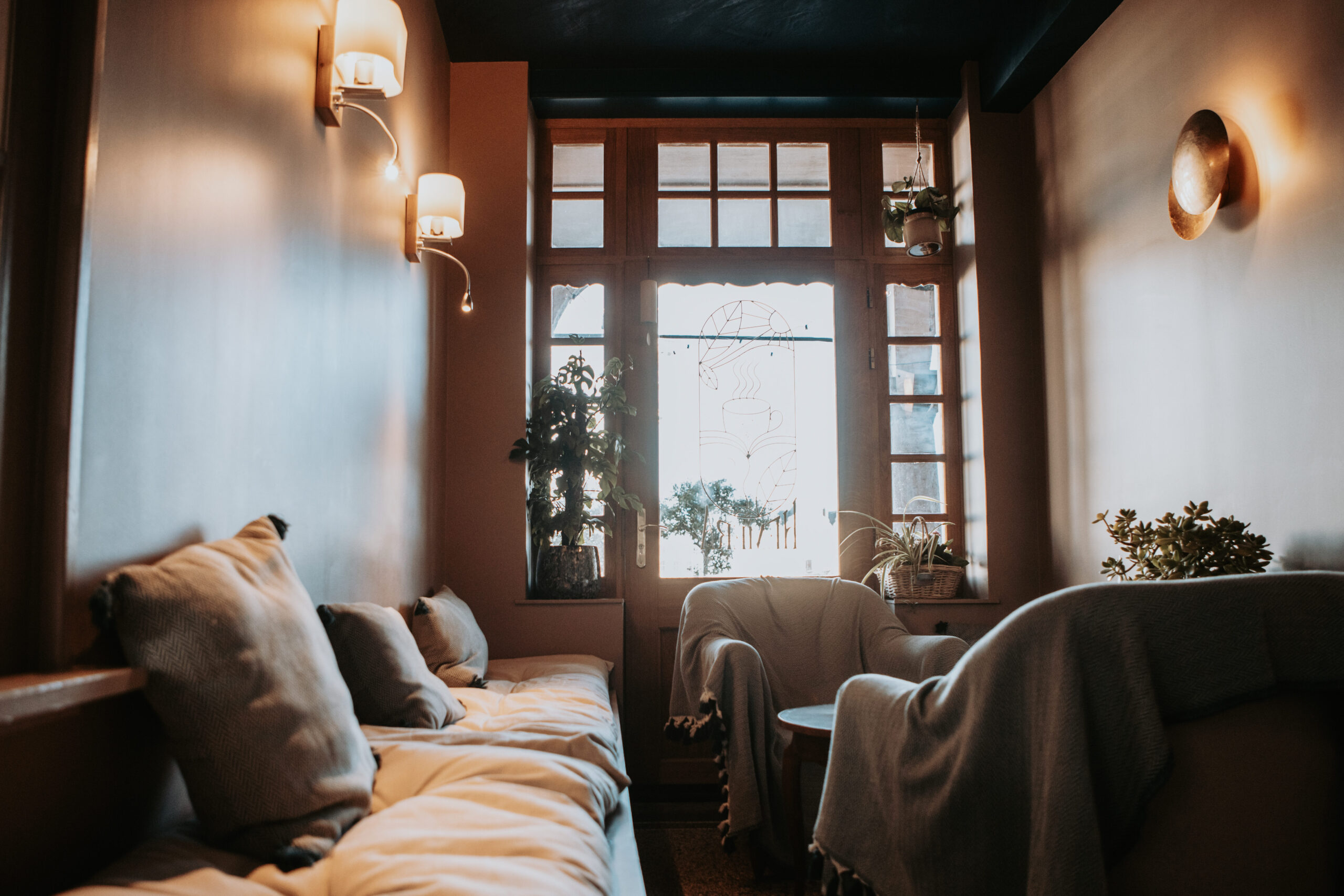 Chez Hemera, vous trouverez une atmosphère calme et cosy, avec des espaces intimistes et une ambiance tamisée, propice à la détente, la concentration et la créativité.